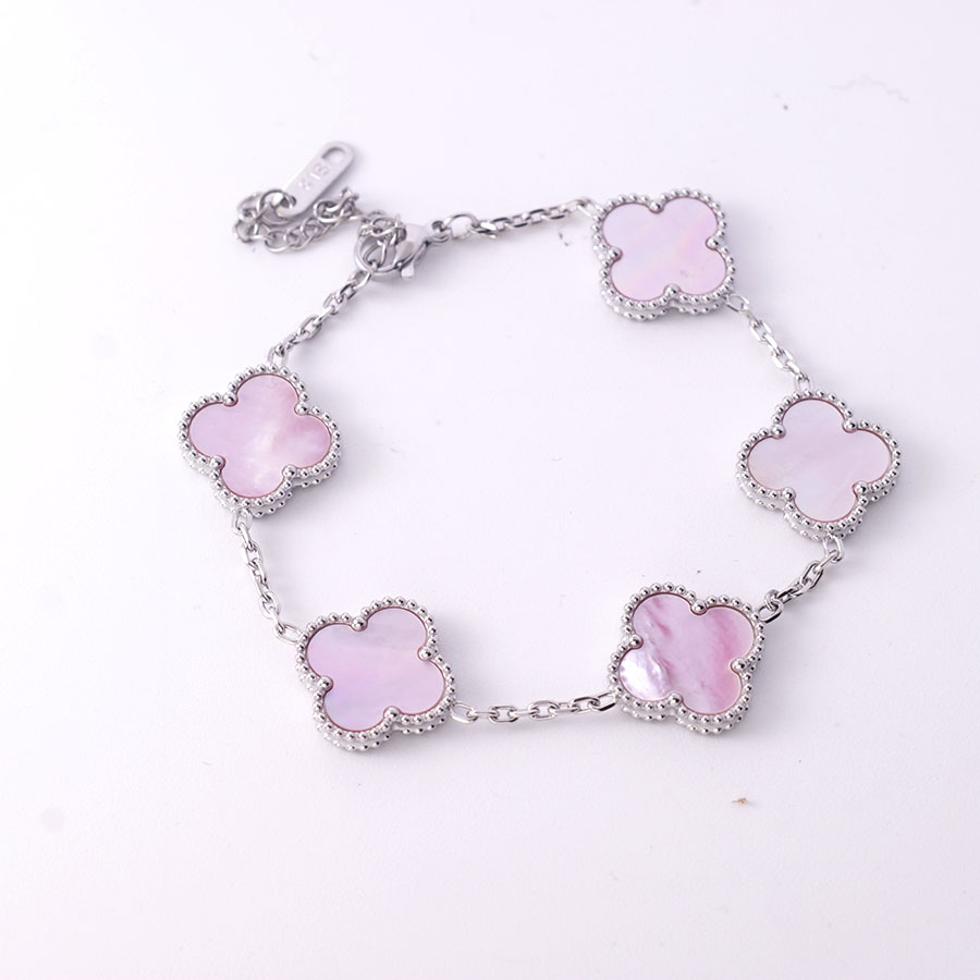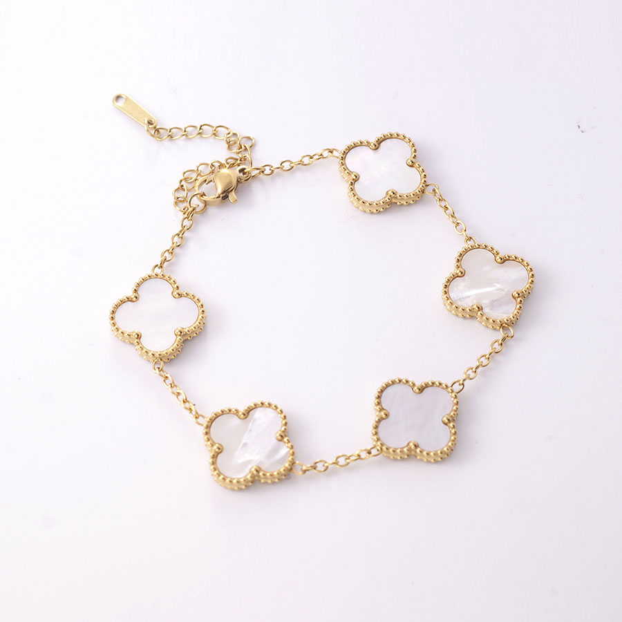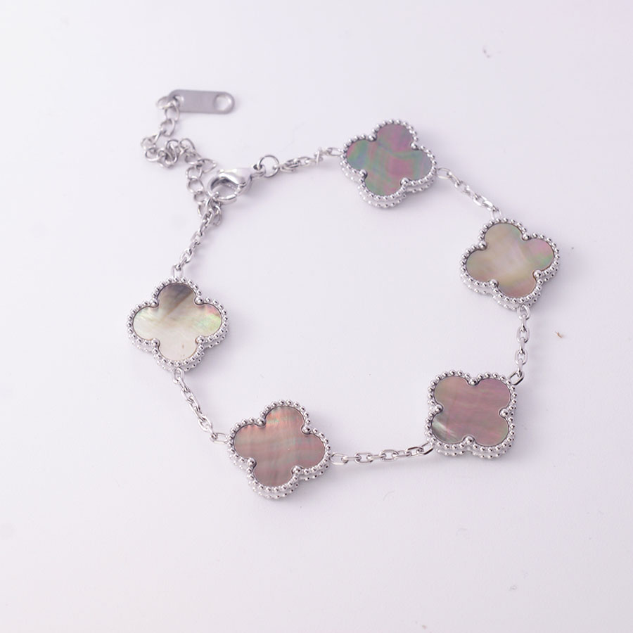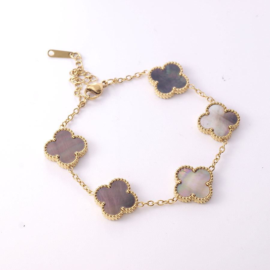 Manufacturer wholesales high-quality stainless steel genuine stone double-sided shell clover bracelet