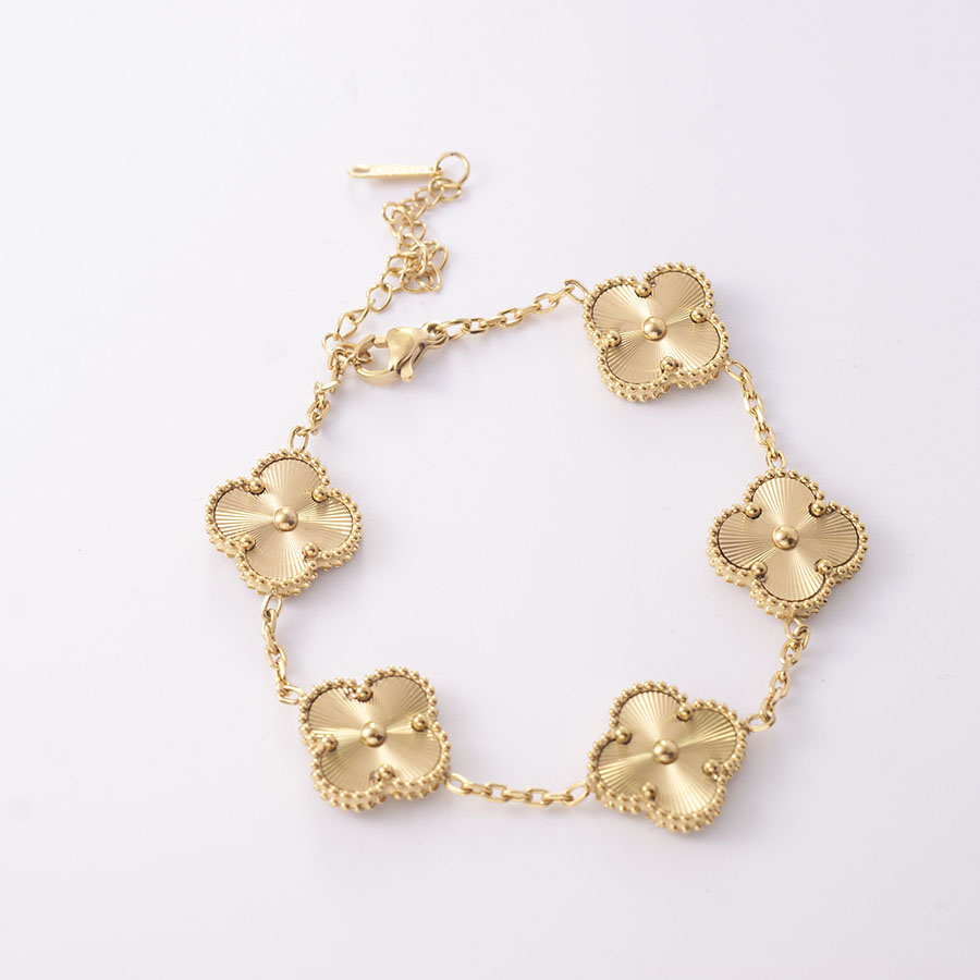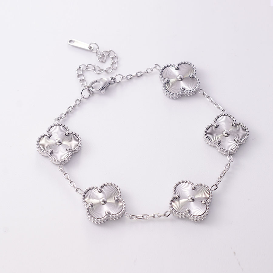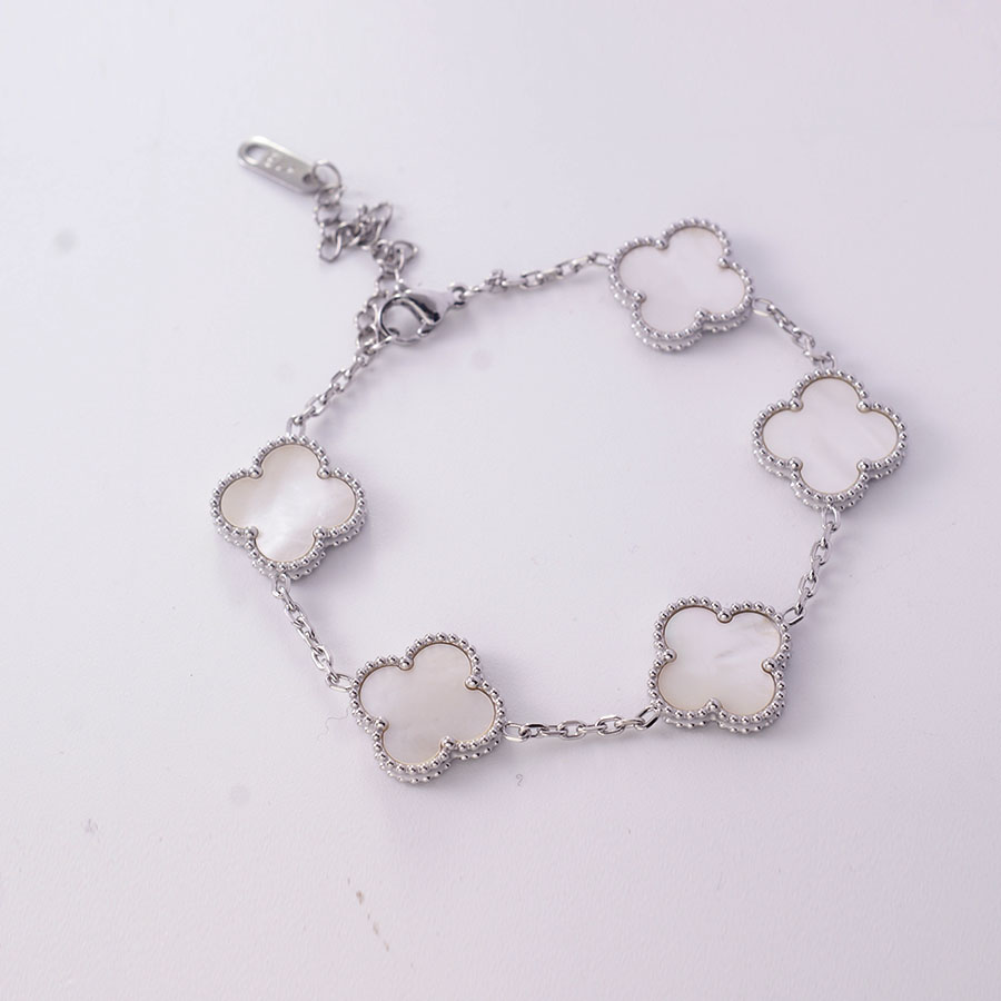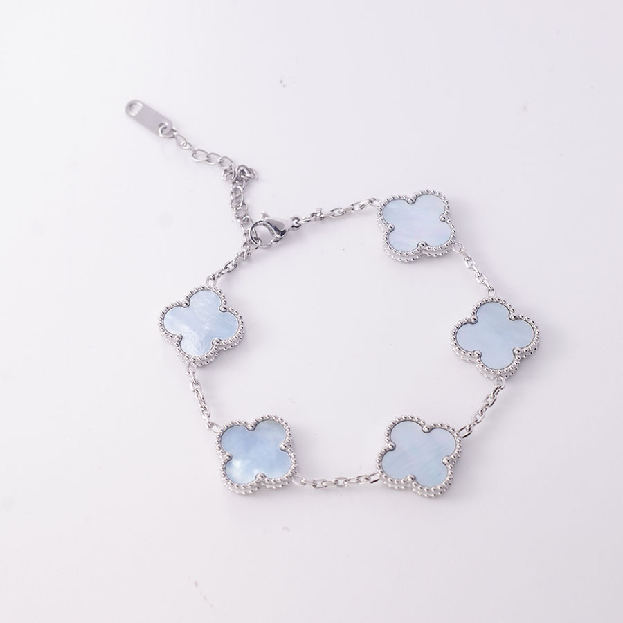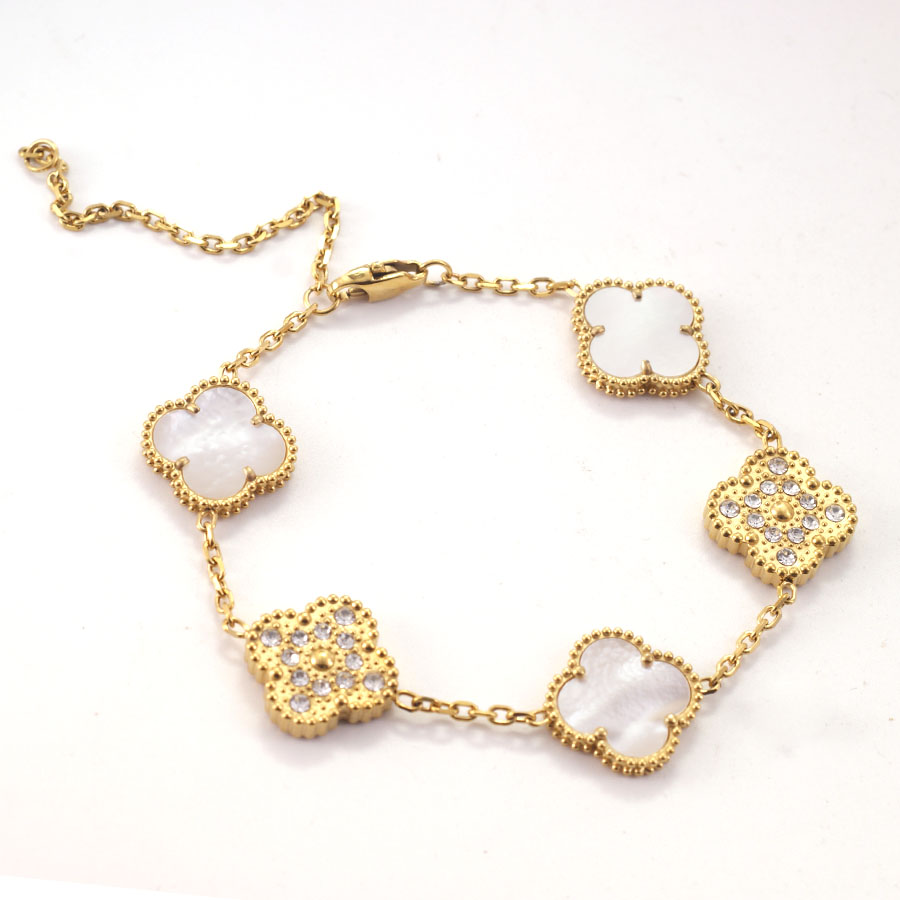 Manufacturer wholesales high-quality stainless steel genuine stone double-sided shell clover bracelet