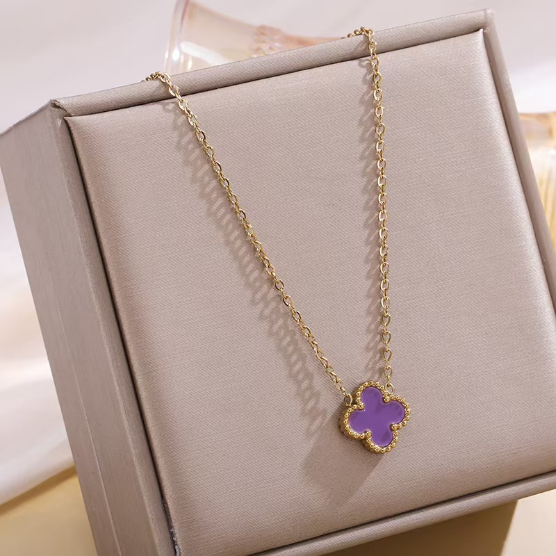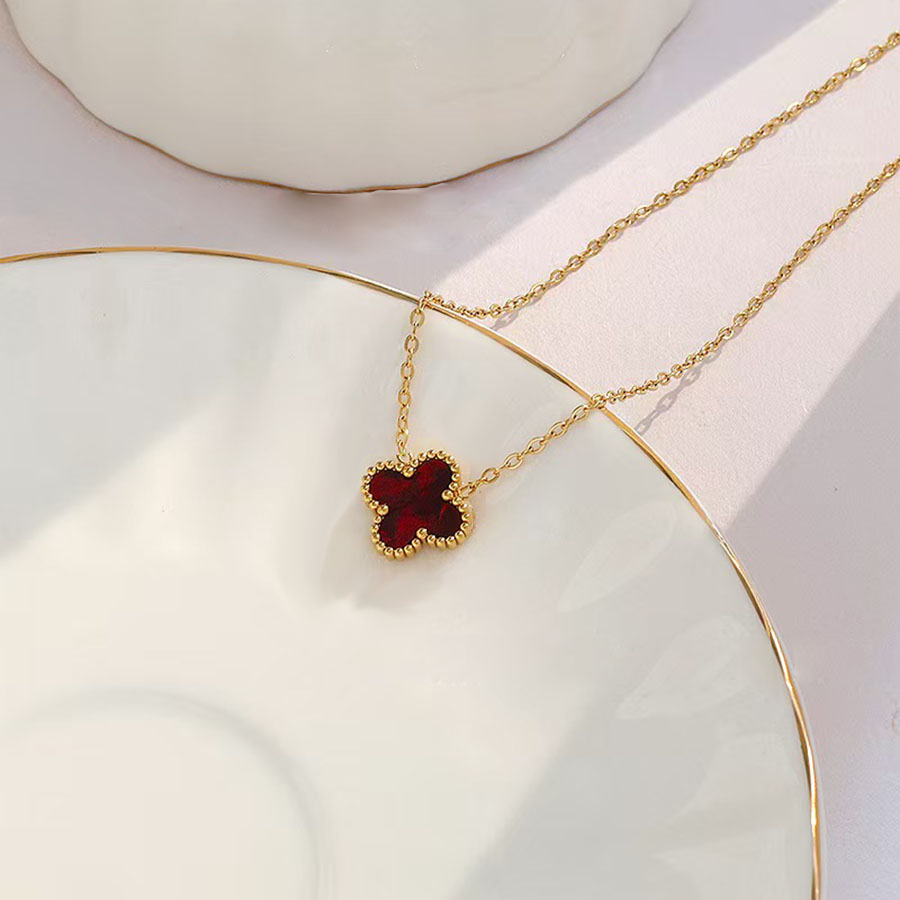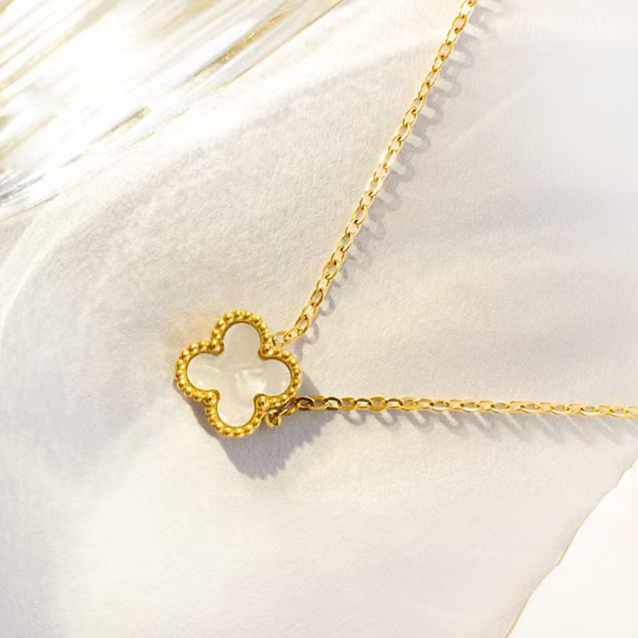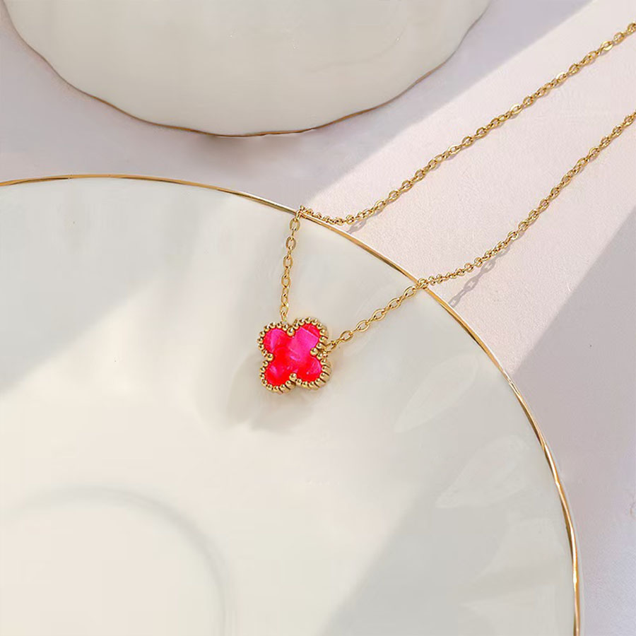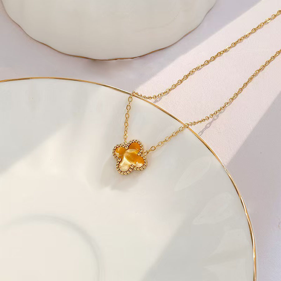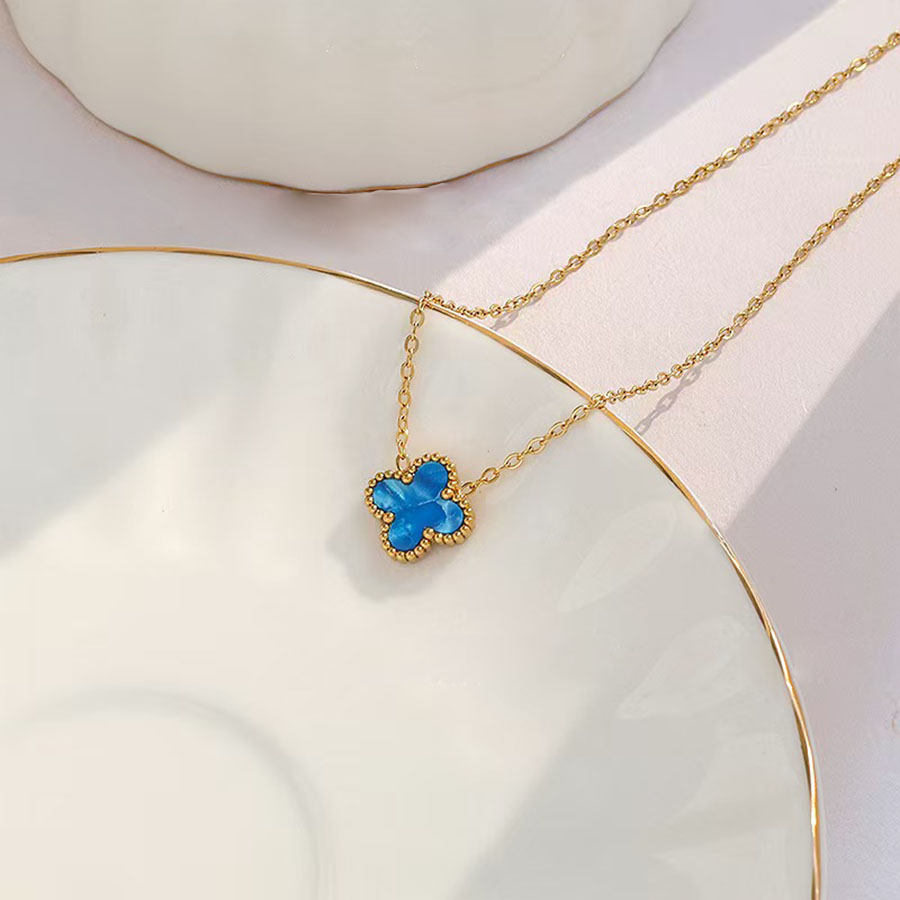 Manufacturer determines high-quality brand jewelry stainless steel women's 1 flower double-sided shell necklace