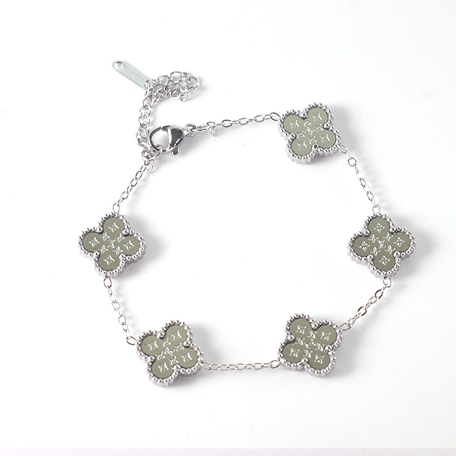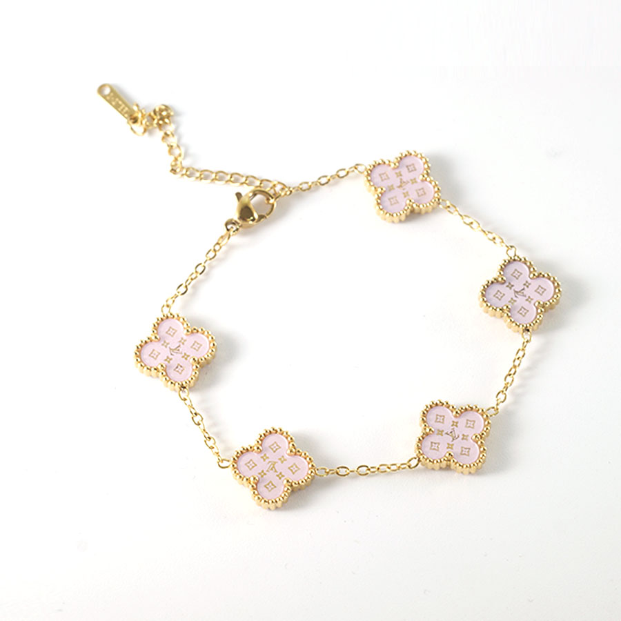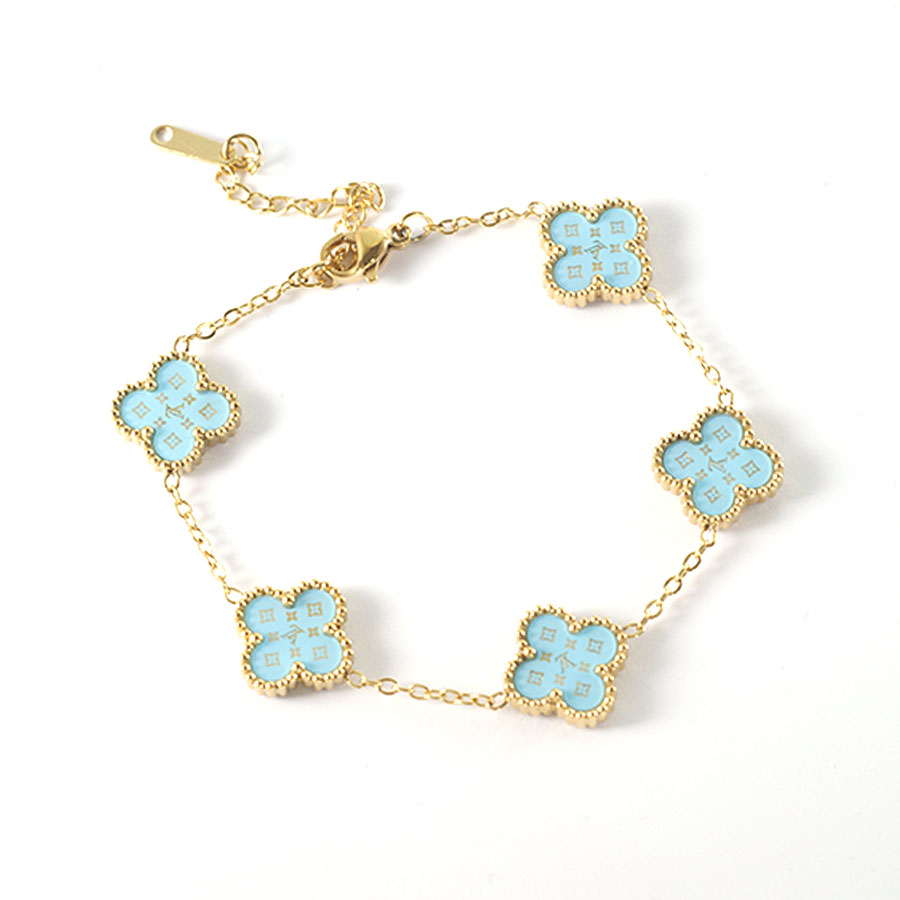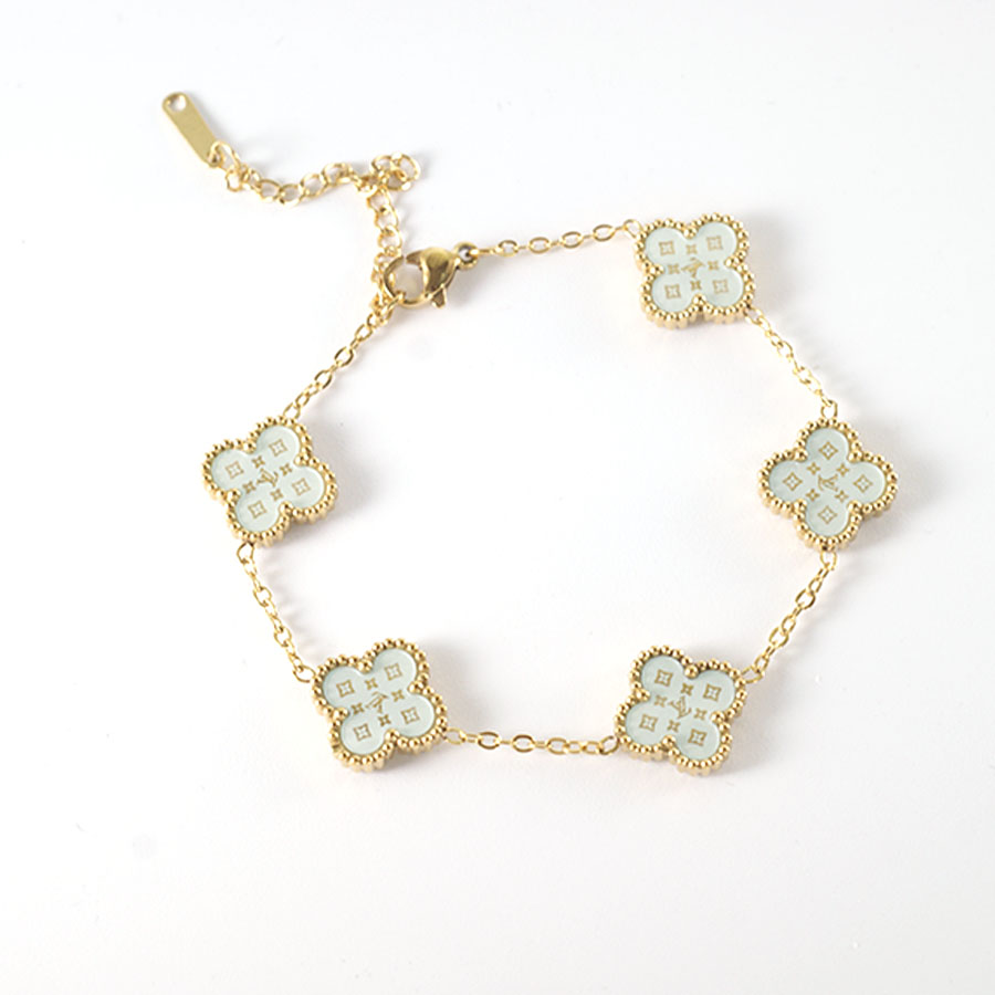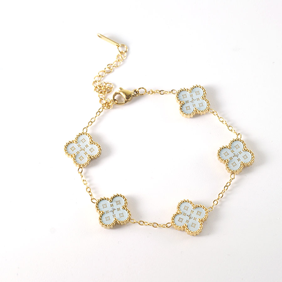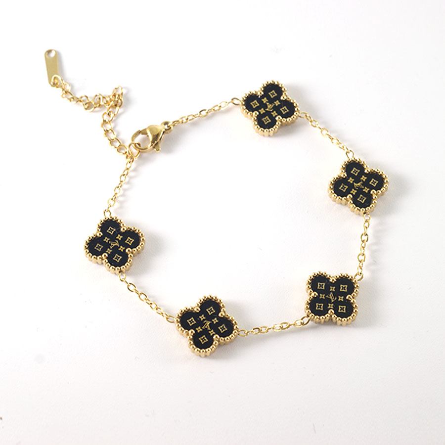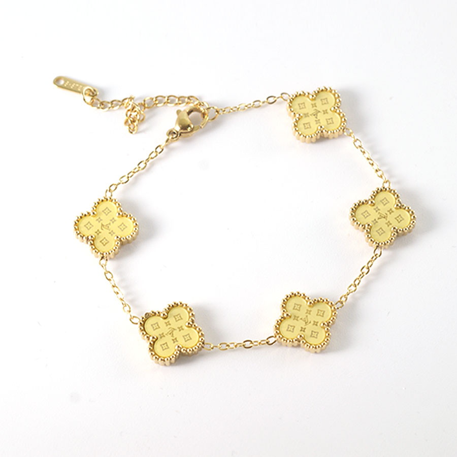 Manufacturer customized high-quality stainless steel jewelry new letter LV pattern double-sided shell clover bracelet