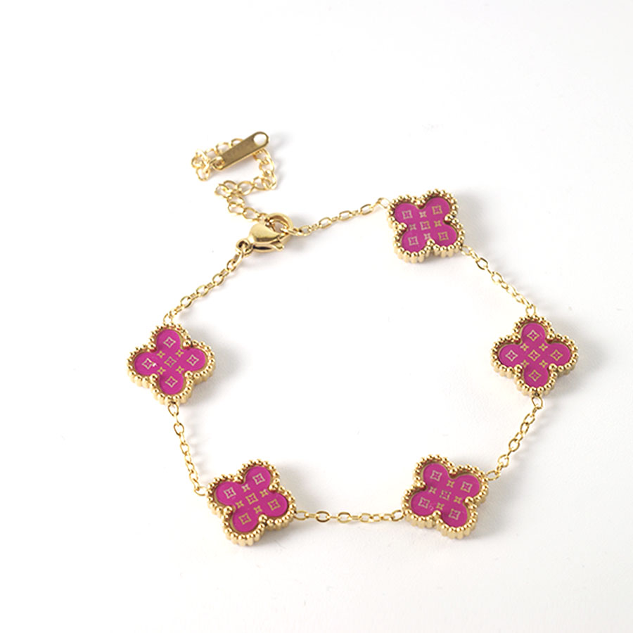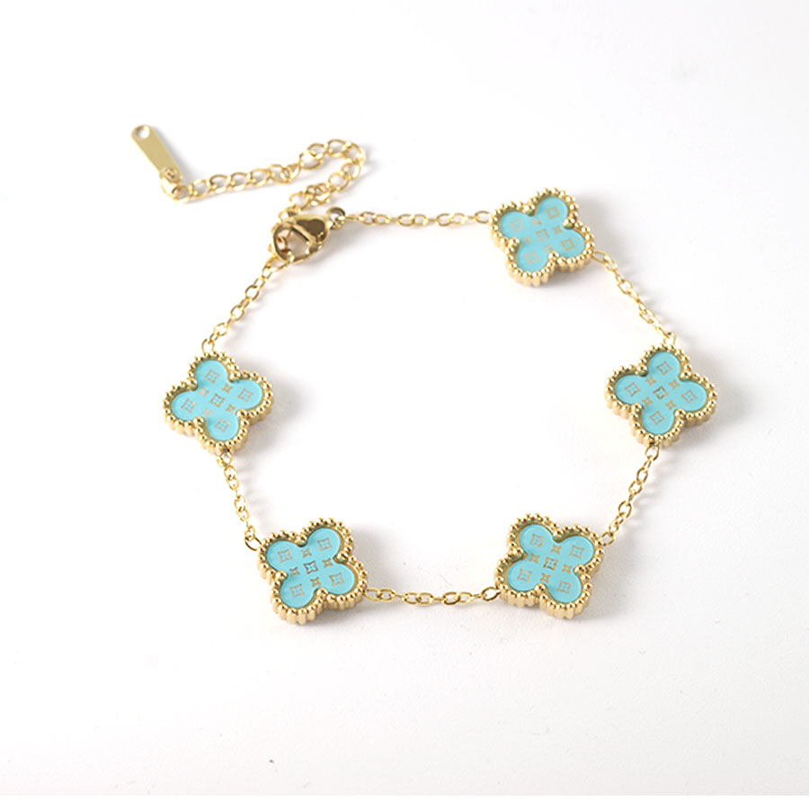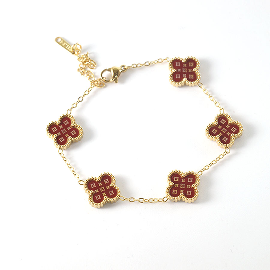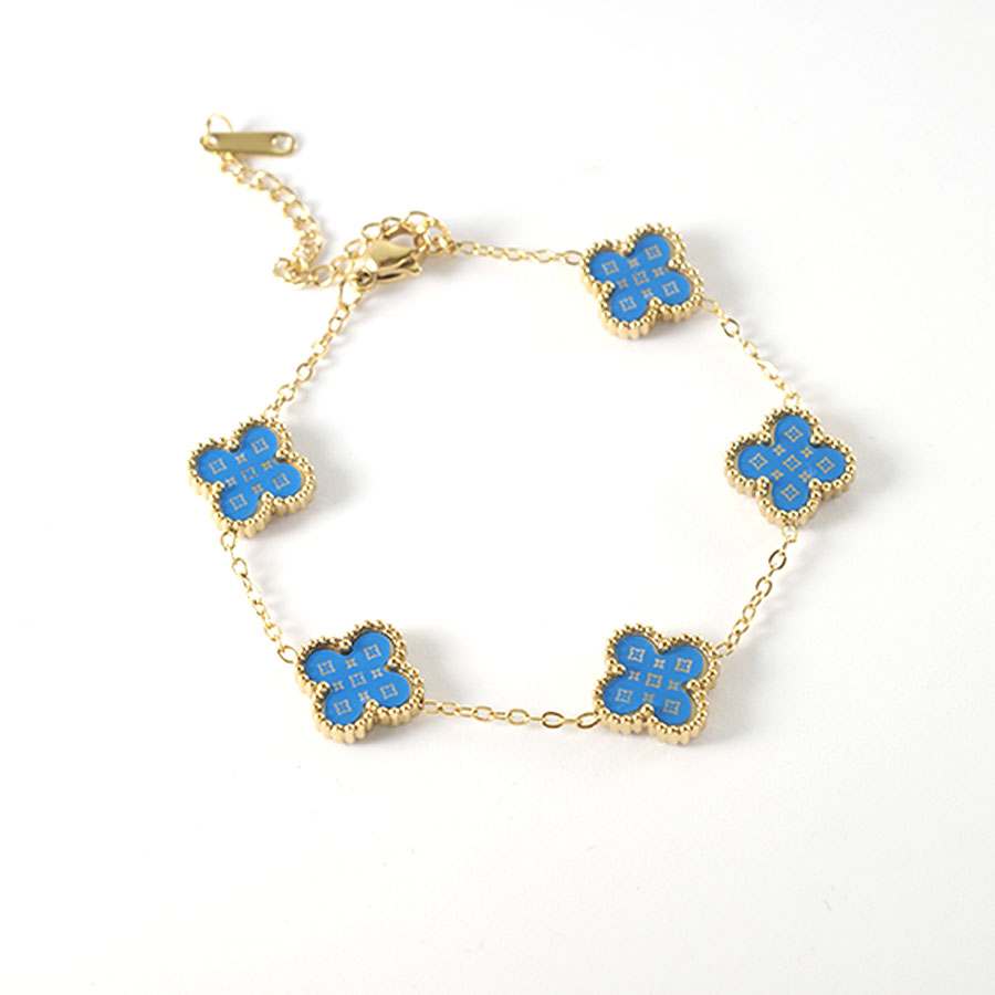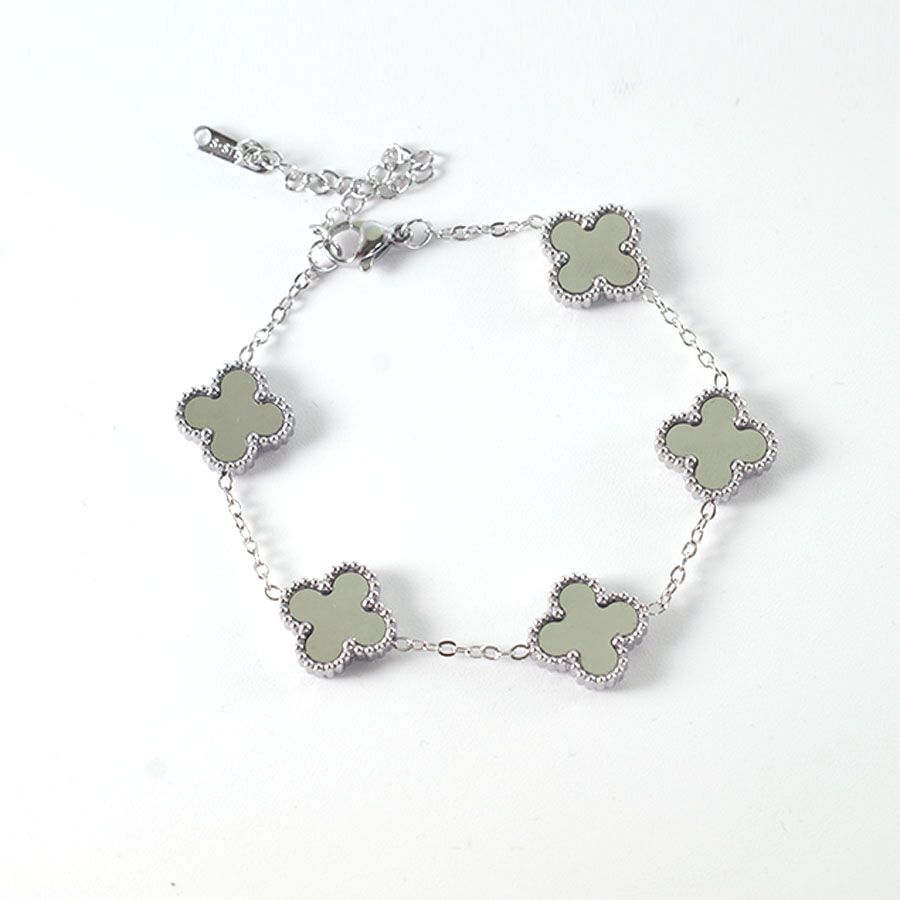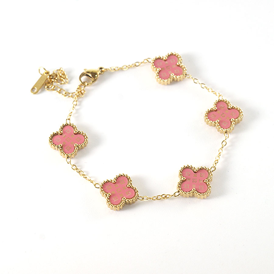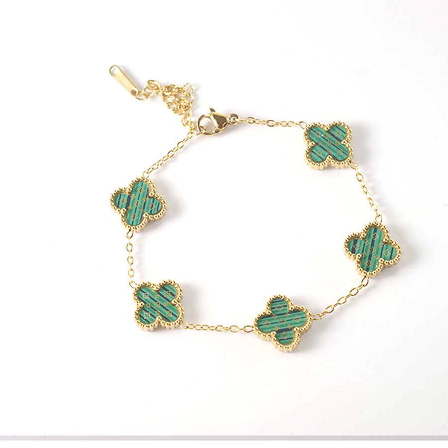Manufacturer customized high-quality stainless steel jewelry new letter LV pattern double-sided shell clover bracelet